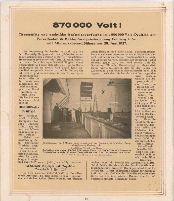 Wir danken unseren langjährigen Kunden, der Firma Minimax, für die Bereitstellung des historischen Artikels aus dem Freiberger Anzeiger und Tageblatt vom 2. Juli 1927.